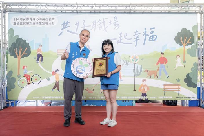 本所鄭主任獲頒苗栗縣114年進用身心障礙者績優機關績優卓越獎獎牌1面,由於本所積極配合縣府進用身心障礙者,努力提供友善工作環境及各項設施,於營造與身心障礙者共同友善工作場所,績優卓越,獲得肯定。